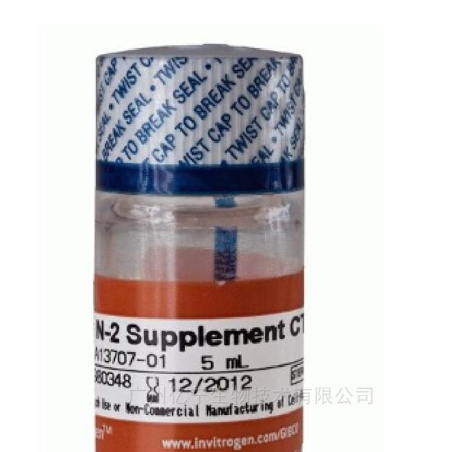 CTS N-2 添加剂是一种无血清的添加剂,适用于支持外周神经系统和中枢神经系统的原代神经母细胞瘤及有丝分裂后神经元的生长和表达。这是一种基于 Bottenstein's N-1 配方且化学成分明确的 100X 浓缩液。CTS N-2 添加剂旨在与 CTS Neurobasal 培养基配套使用。